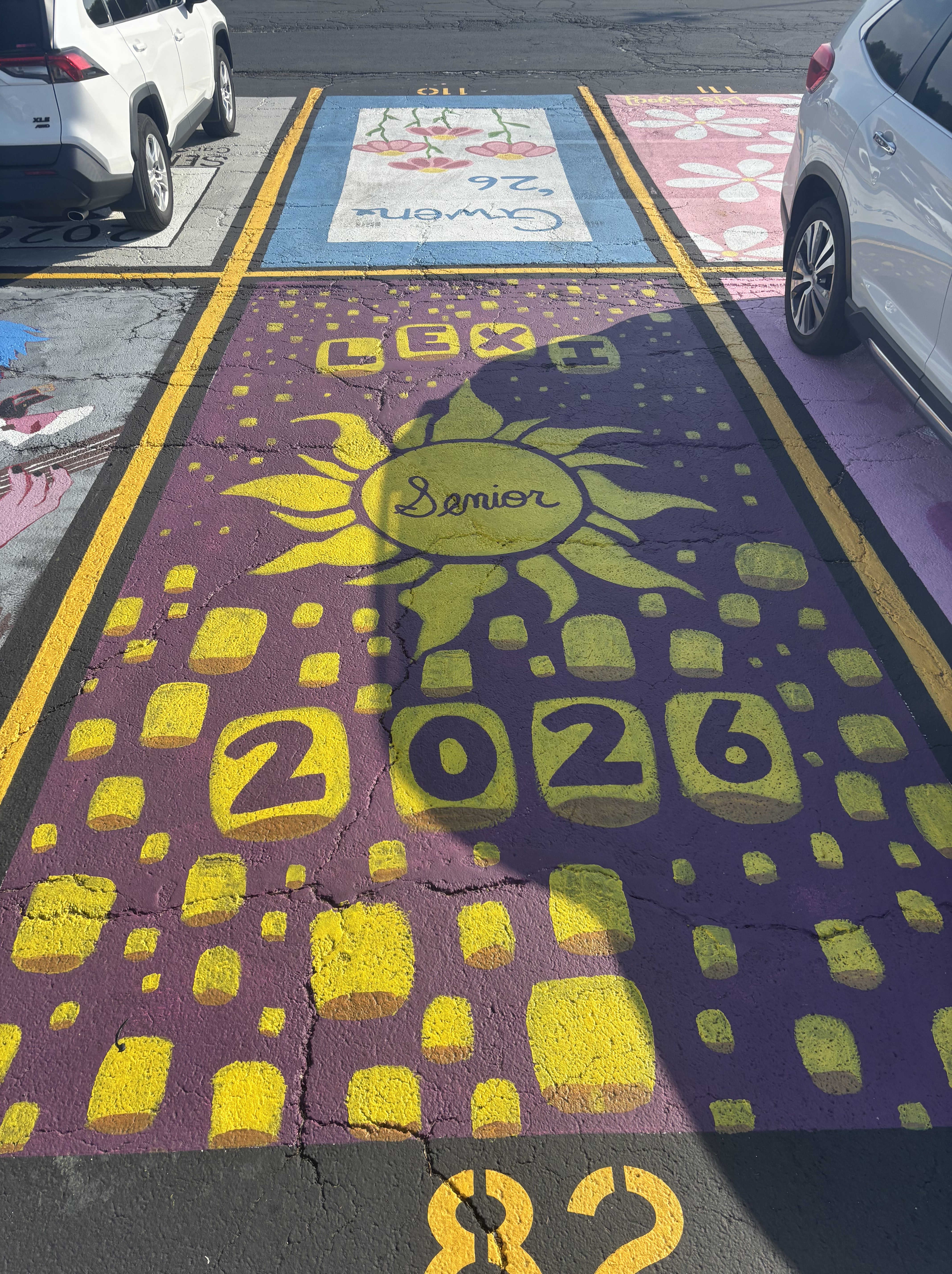 Murray also said the spots serve as a “visible reminder of Bulldog pride–when staff and visitors drive through the lot, they see the designs and individuality that represent our senior class.”