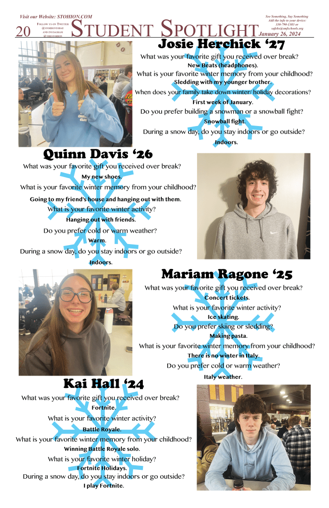Jimmy joined “to impress a girl–I guess that worked out because we’ve been married for five years now.” Last year the team won the Akron District for the first time. This year’s team is younger than last years, but the team was able to win second in the Akron District.